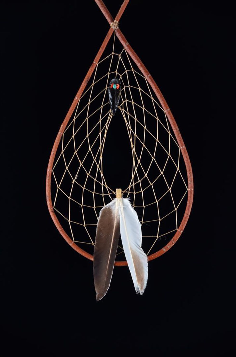 Dream catchers, or dream snares, were created by the Ojibwe people and passed to different tribes through trading and marriage. They are meant to resemble a spider web, woven to catch and remove bad dreams. There is meaning to every part of the dream catcher, the hoop (or tear drop-shaped hoop) symbolized the sun and moon travel across the sky with time. Feathers were usually added, traditionally hanging at the bottom to let the good dreams slide down them to the dreamers below.