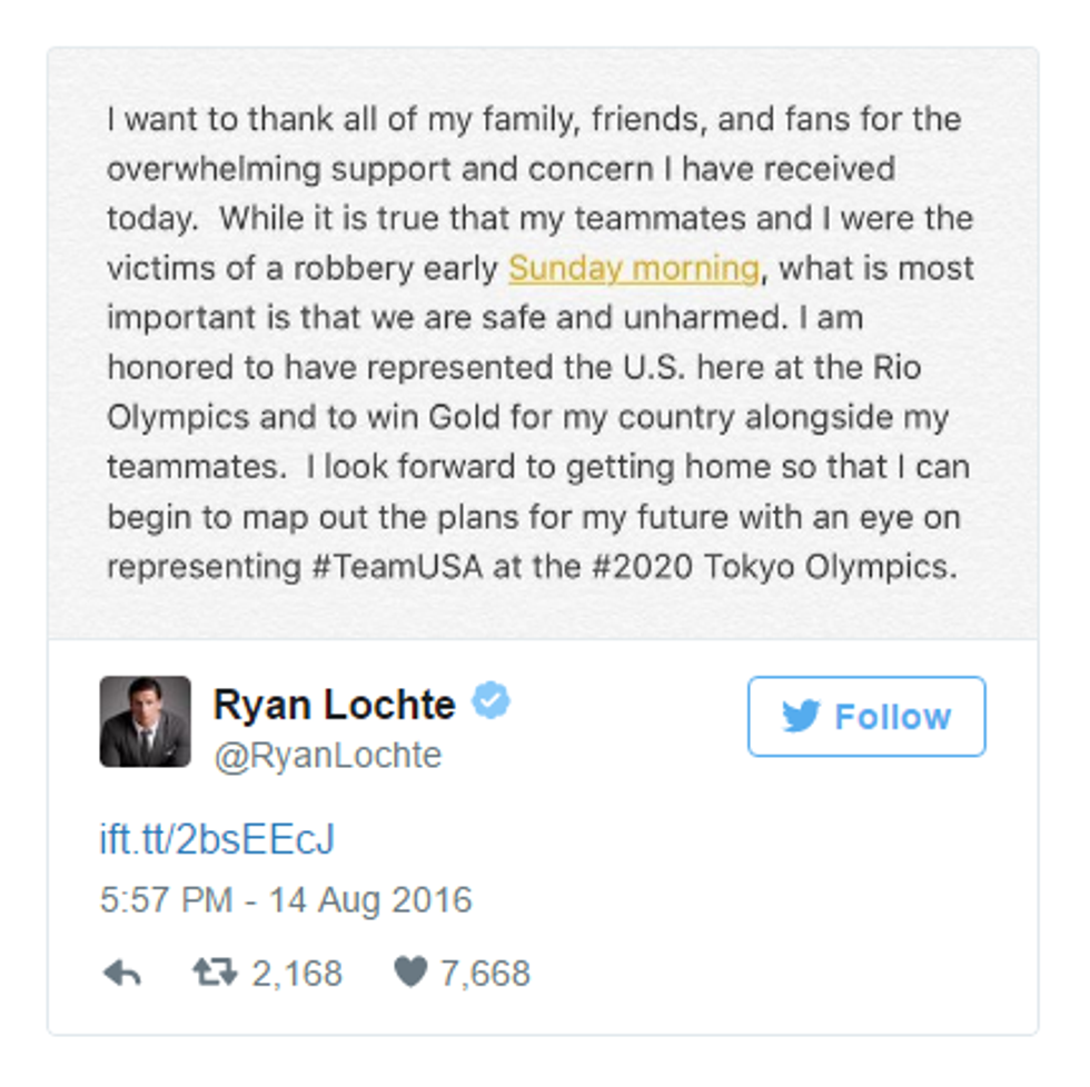 In an interview with NBC, Lochte stated that he and other swimmers were on their way to the Olympic Village in taxis before they were pulled over and robbed.