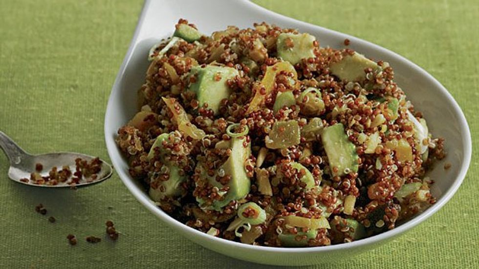 My favorite way to eat this is to dice half an avocado in the skin, then gradually mix with the quinoa while eating. This is fastest with a microwavable single serve cup of quinoa and my personal favorite as a snack.