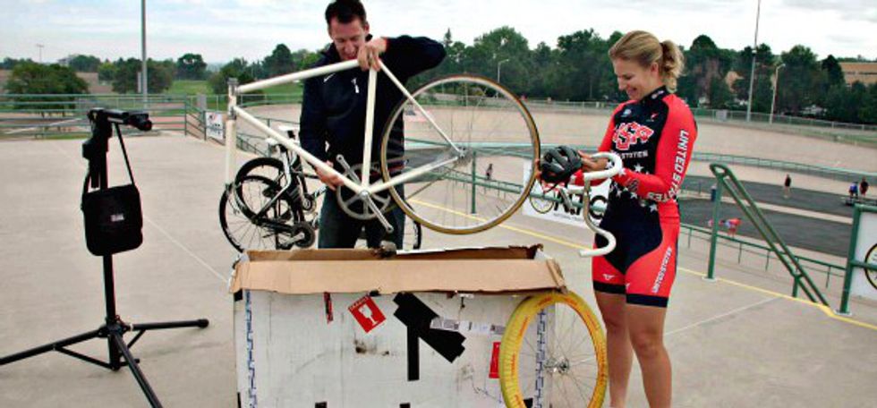 Up next is American cyclist Sarah Hammer, who holds the current world record for the 3000m bicycle individual pursuit. Her time, 3:22.269 minutes is compared to Beryl Burton, a British cyclist who dominated women’s racing in the 1960s. Burton won seven world titles in her time, and was a five-time 3000m pursuit champion. Hammer is challenged to beat her old record using a vintage bike and smaller helmet, becoming overall less efficient with each revolution and less aerodynamic in her positioning on the bike. Hammer completes the course, beating Burton’s time by over 10 seconds and giving Haake hope for the athletes of the present.