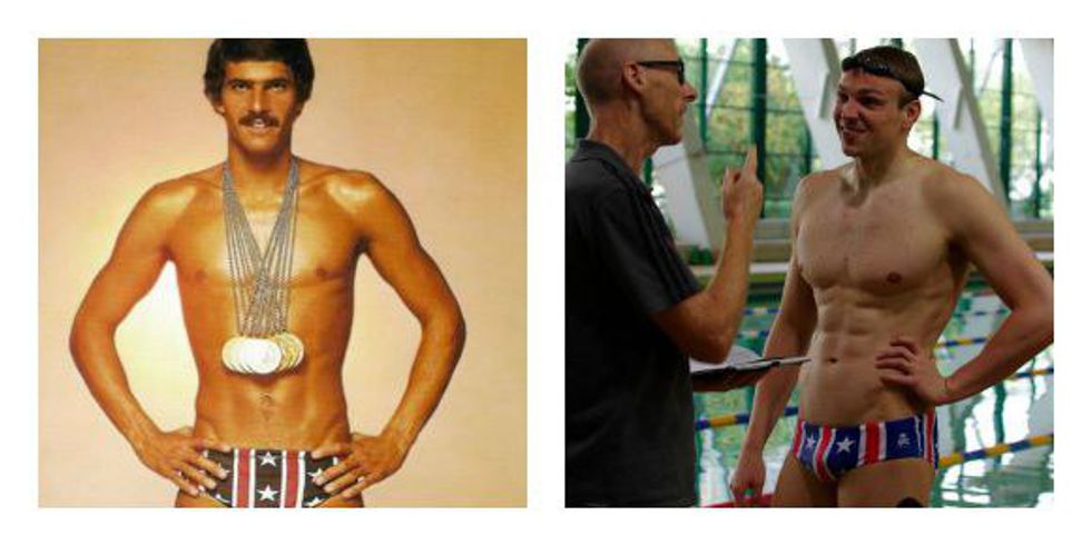 Initially wearing a high-tech-full-body suit when achieving his world record, Paul Biedermann trades his outfit for a 1970s Speedo to compete against nine-time Olympic champion Mark Spitz. During his career, the American swimmer Mark Spitz set 33 official world records and won 9 Olympic golds; a true legend of the past. Unfortunately, without his high-tech suit and the heat of the competition, Biedermann is unable to beat Spitz’ 200m swim record from the 70s. "The suit increases blood flow and overall performance," he says, giving justification behind the banning of the full-body suits in 2010.