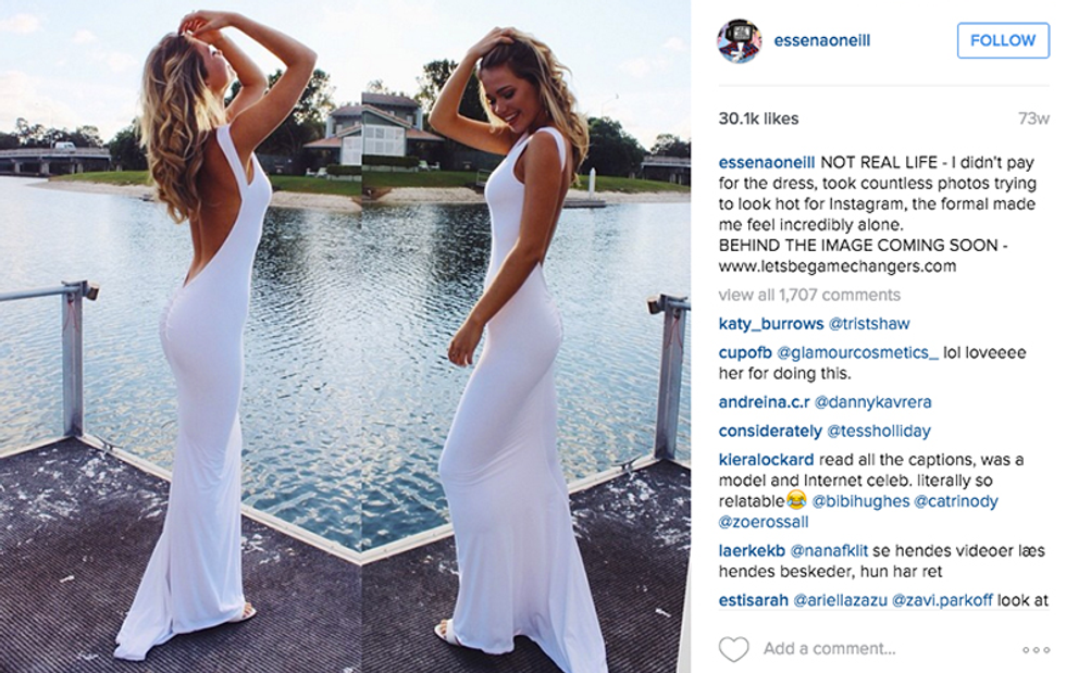 Before deleting her Instagram for good, Essena deleted some photos and left a few up. She edited the captions of the ones that she left up to reveal the truth of what was going on in each photo.