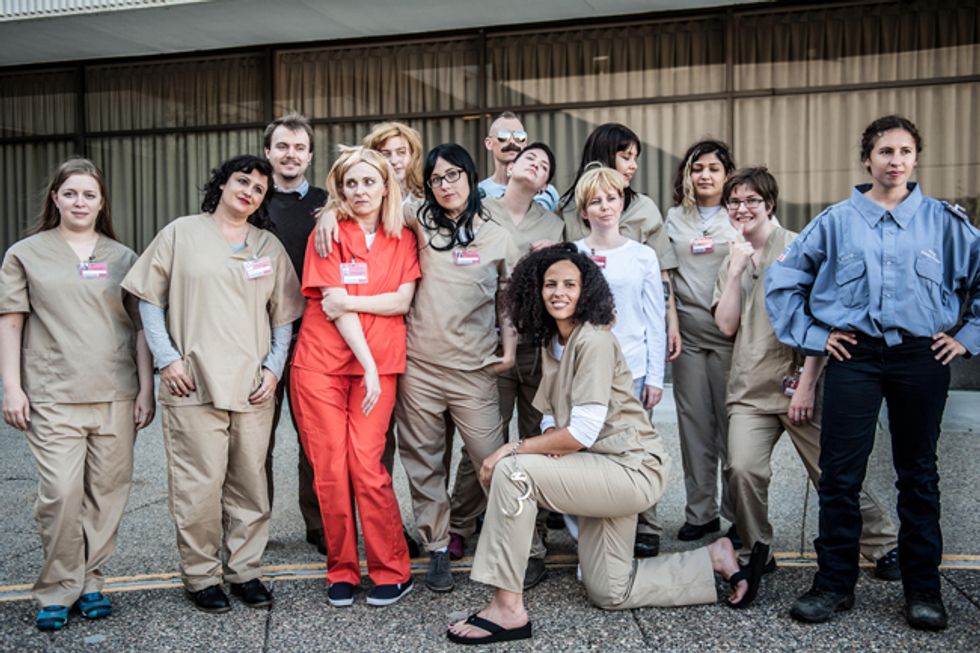 Make even the dingiest prison uniform look cute with this costume idea. Even if you can't get the exact characters, just having a group of your friends together in the same beige outfit and red ID tag will have you instantly recognized.