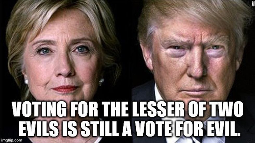 So tell me when, America. When we decided to support to candidates that we all claim are "not perfect." When did we decide to put these two people in the front running if everyone claims they are only voting for the lesser of two evils. If this were the case these two wouldn't have gotten this far, there were other options.