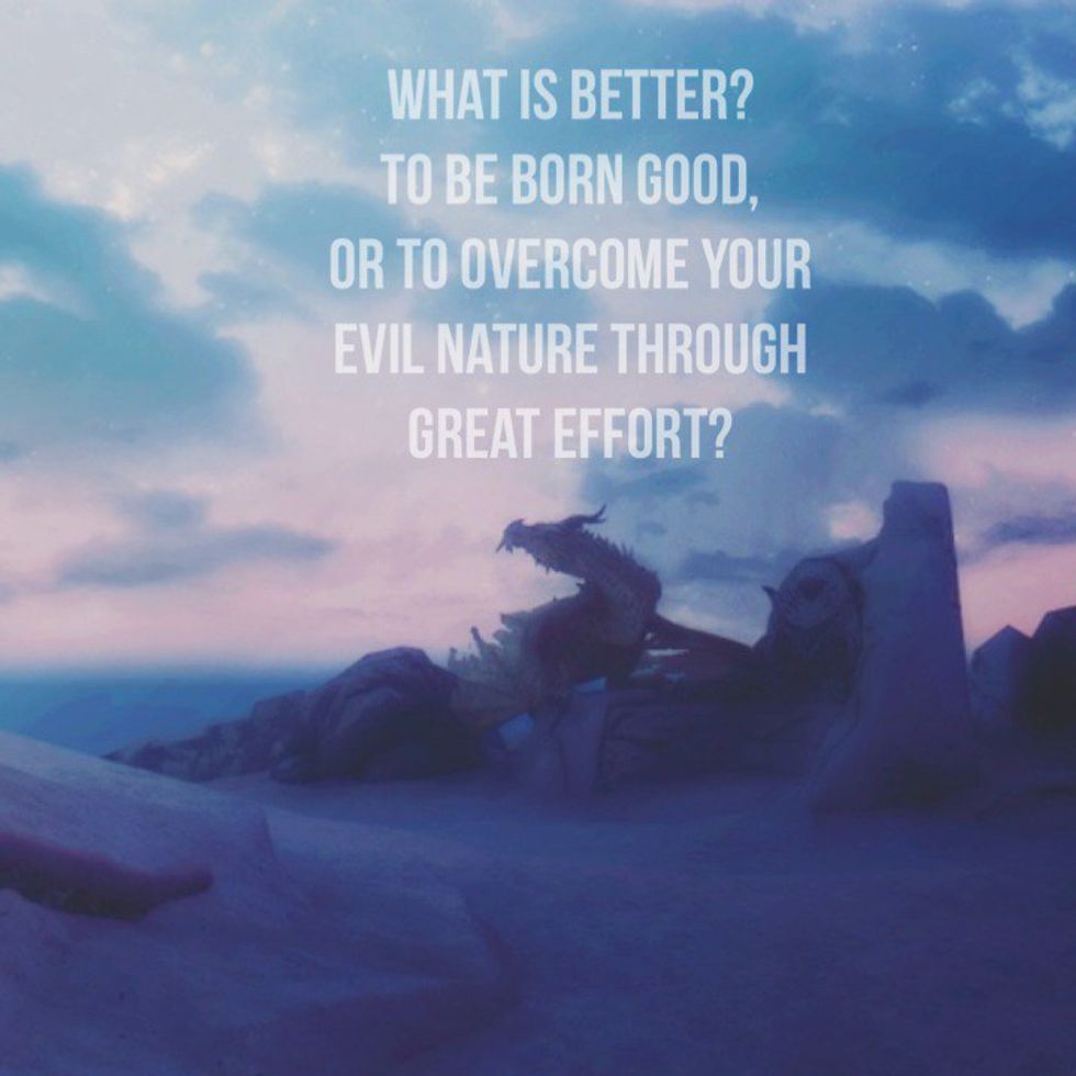 As a case in point, in the popular video game "Skyrim," the player is confronted with a choice along the main story arc. The story of the game follows that dragons enslaved man for many years, but eventually man overcame the dragons and drove them nearly into extinction. This was only made possible by the actions of a dragon named Paarthurnax, who gave man the instrument to free themselves. Being a lieutenant, Paarthurnaax was responsible for the death and suffering of thousands over the ages. However, without his help, mankind would never have been free to begin with. When the dragons return during the time-setting of Skyrim, Paarthurnax again aids man by helping the main character, who is the last person capable of permanently killing dragons. The Blades, a group dedicated to wiping out the dragons and who also aid the main character, ask them to kill Paarthurnax. In the eventuality that the main character dies, no human will be able to kill him. The player is left with the dilemma of weighing Paarthurnax's considerable sins against his help, with the added factor that no one can permanently kill him if the player doesn't. One who has already killed and enslaved thousands must be trusted to remain benevolent for eternity after the main character's death. Neither choice is free of consequences and you are forced to think.