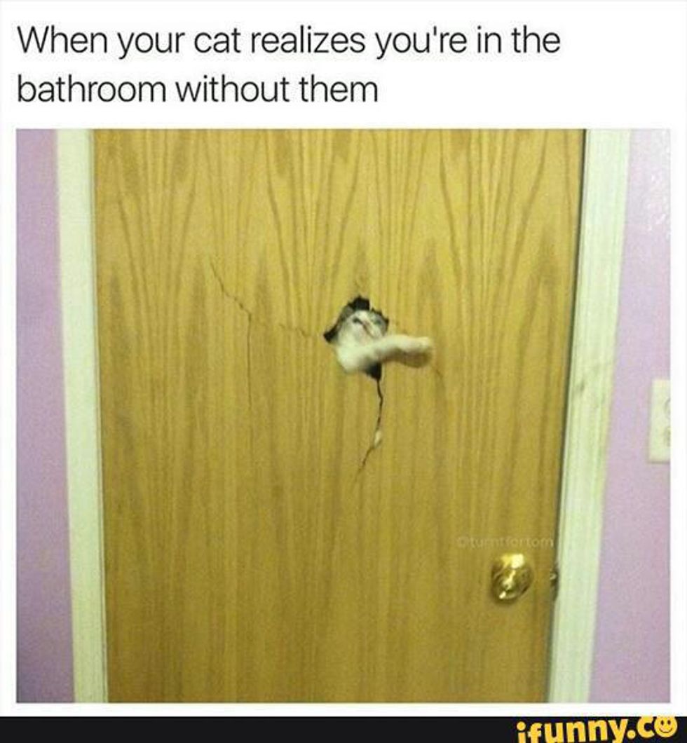 They aren't afraid to climb right into your lap when you're sitting on the toilet.