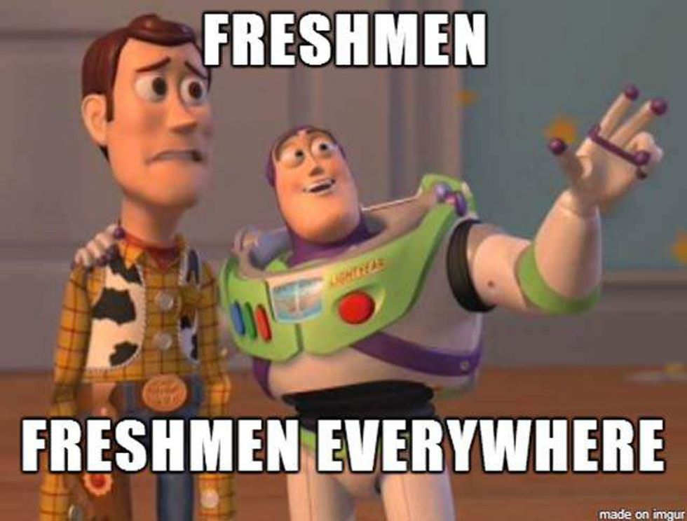 Sorry guys, you can't hide from us upperclassmen. We know who you are, we see you running across campus, and we wish we were you. At least you guys are still too naive to realize that college is going to kill you in a few weeks, but please have your fun. I'll be watching from my apartment window crying.