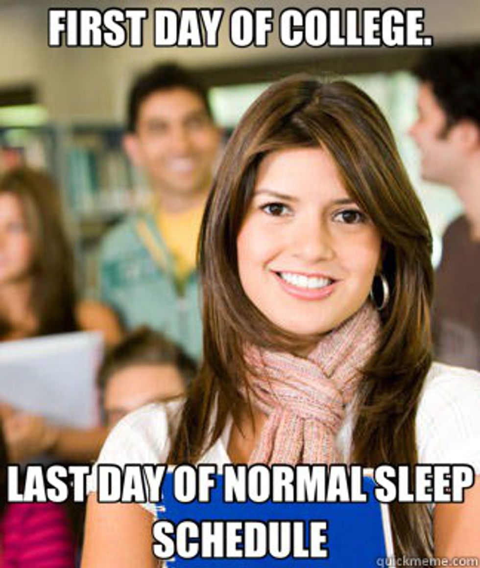 I hope you slept in as much as possible before your first class, because that will be that last normal night of sleep you get. Welcome to sleeping for four hours due to studying, and then taking naps in between classes. I never napped as much as I do now that I'm in college. They're the only thing that keep me sane along with drinking coffee of course.
