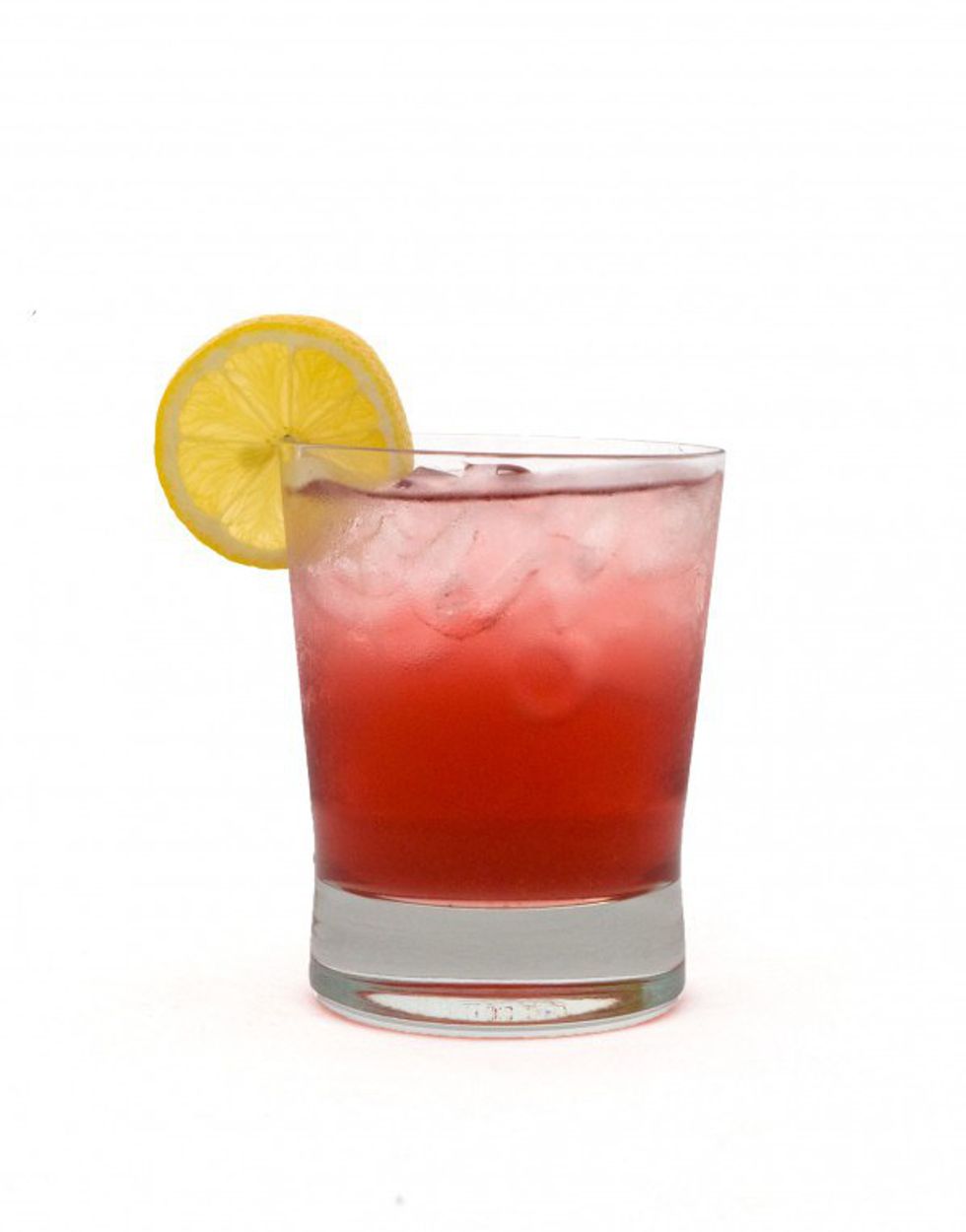 Combine all ingredients in cocktail glass over ice. Stir, garnish with a lemon wheel and serve. Don't feel emasculated just because it's pink.