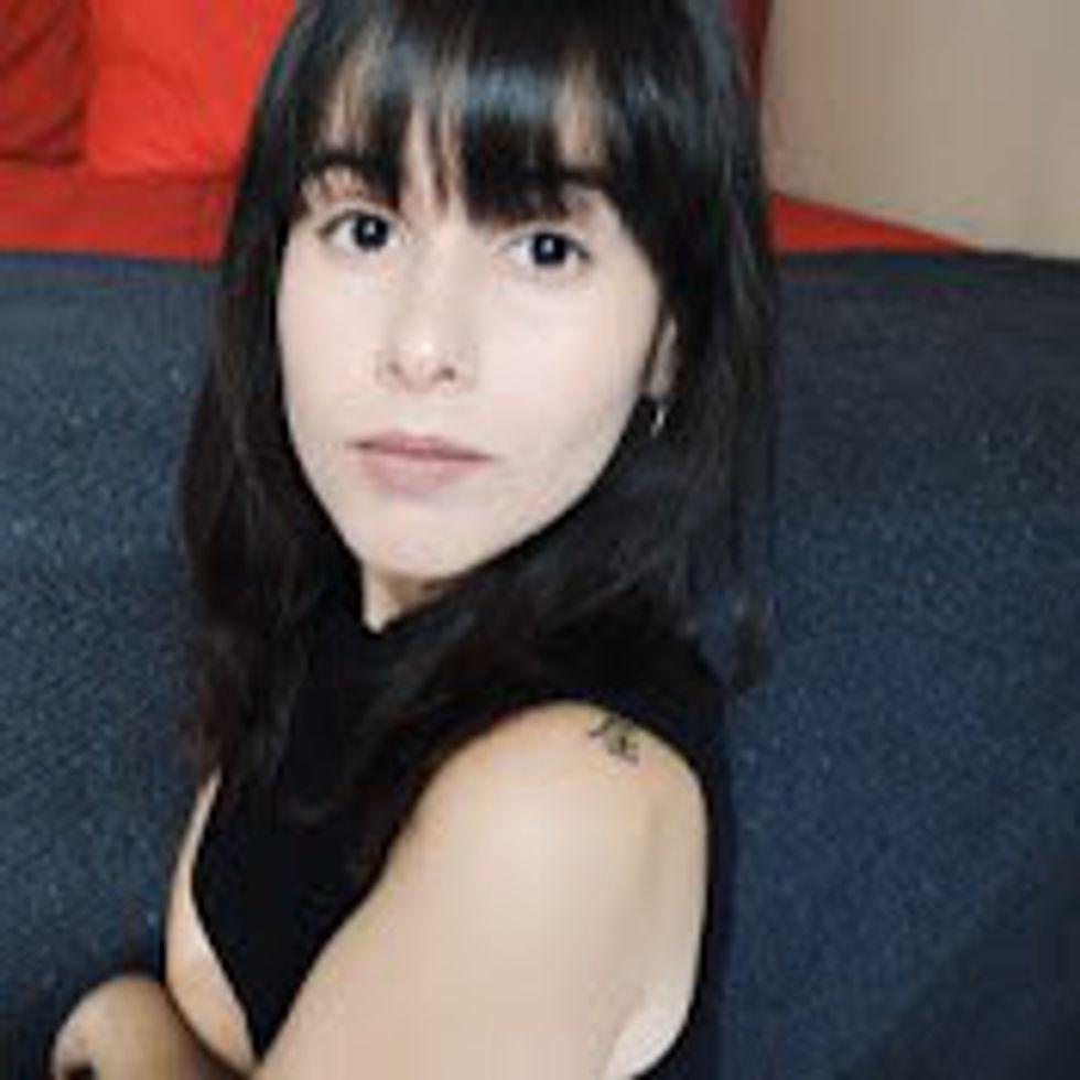 Image description: Andrea, a light-skinned Latina with thin bangs, peers over her shoulder at the camera. She has shoulder-length hair, is not wearing visible makeup, and has on a sleeveless blouse.