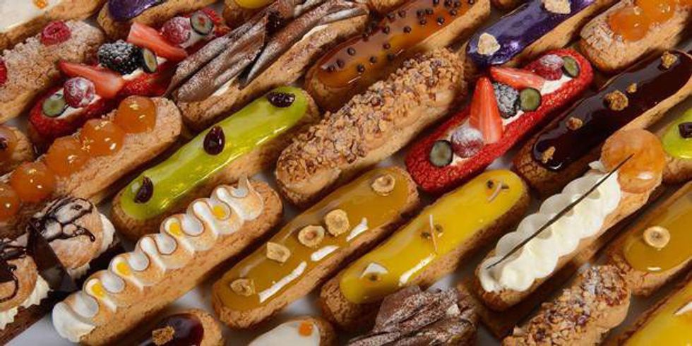 Description: Tubular pastries made from choux dough baked until the center becomes hollow and is then filled with cream and frosted. Éclairs come in endless delicious flavors and are usually decorated to highlight their flavor.