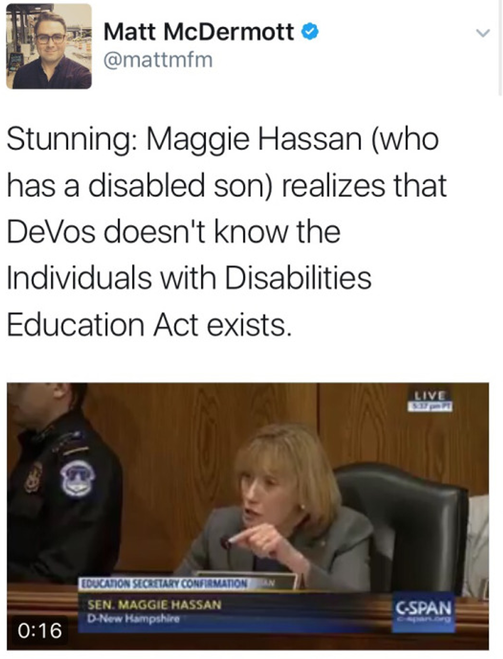 “Kaine responded: “So some states might be good to kids with disabilities and other states might not be so good and, what then, people can just move around the country if they don’t like how kids are being treated?”