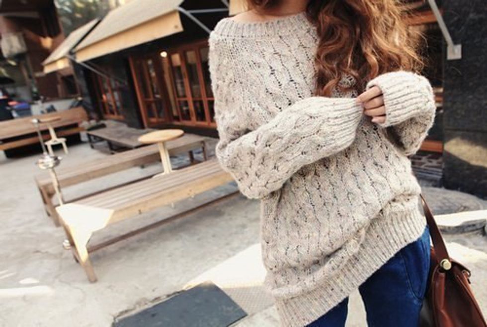 I love big sweaters that swallow you whole. And fall is the perfect time for these. Its not like its snowing out so you don't have to put on a shirt, a sweater, and a jacket. You can walk around in your giant sweater and be perfect almost all day. Wearing a giant sweater is like walking around in a socially acceptable blanket.