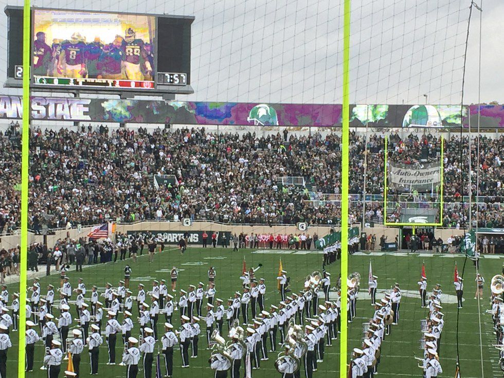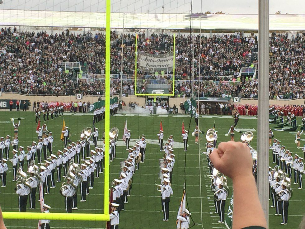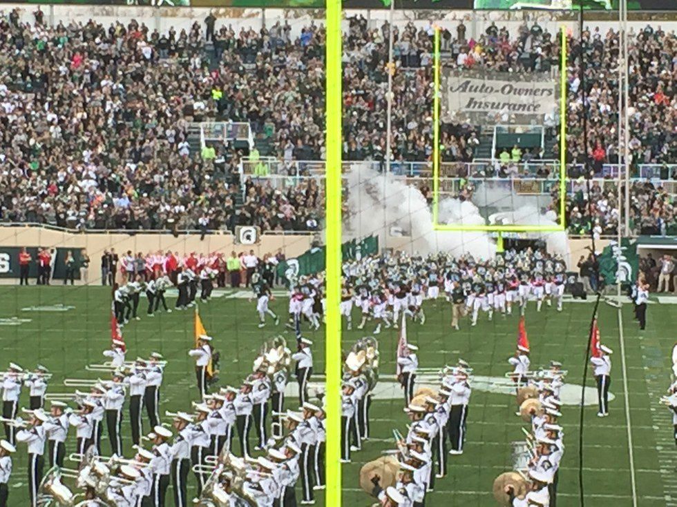 1. That exhilarating moment when you see the MSU football team and Mark Dantonio on the jumbo screen gives you goose bumps every time. You then get to watch them emerge from the smoke-filled tunnel and charge onto the field like true Spartans.