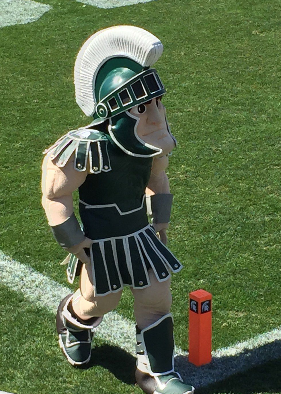 2. Our lovable Sparty running with the MSU flag onto to the field and firing up the crowd with his dancing makes him the best mascot around.