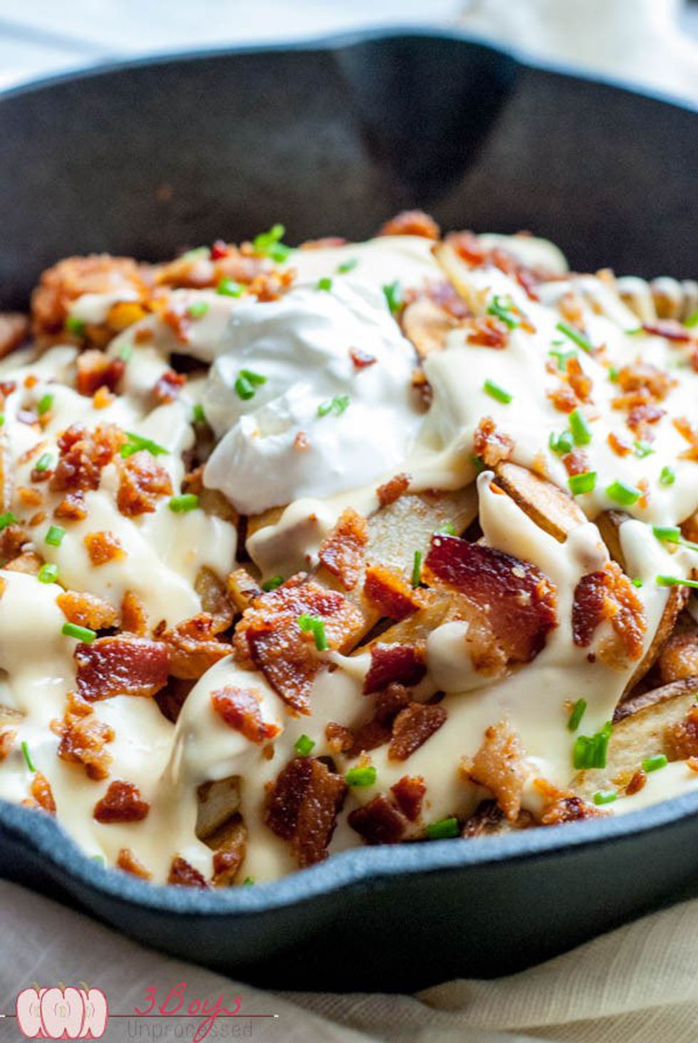 Cheese fries are amazing because you can put anything on them and they'd still probably taste good. Throw on some meat, olives, jalapeños, way too much cheese, and you have a party. This recipe, however, shows you how to make your own cheese sauce so you don't feel too guilty about eating two cans of Cheez Whiz. Don't forget to top it off with bacon because, like I said, you can never have too much.