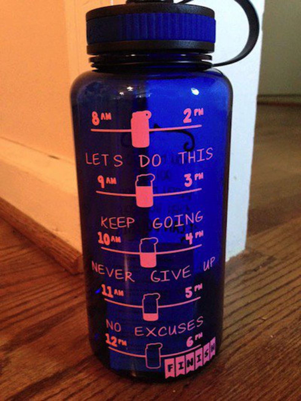 This is something I’ve been doing since birth it feels like. Apparently, everyone should drink eight cups a day, which is about 64 ounces of water. Drinking water keeps you hydrated and feeling great. It also helps curb hunger. Sometimes when we think our body is hungry, it's really just a bit dehydrated. Try drinking a glass of water when you feel hungry shortly after eating. If drinking this much water seems like a bore, they make cute little water bottles with goal markers for each hour.