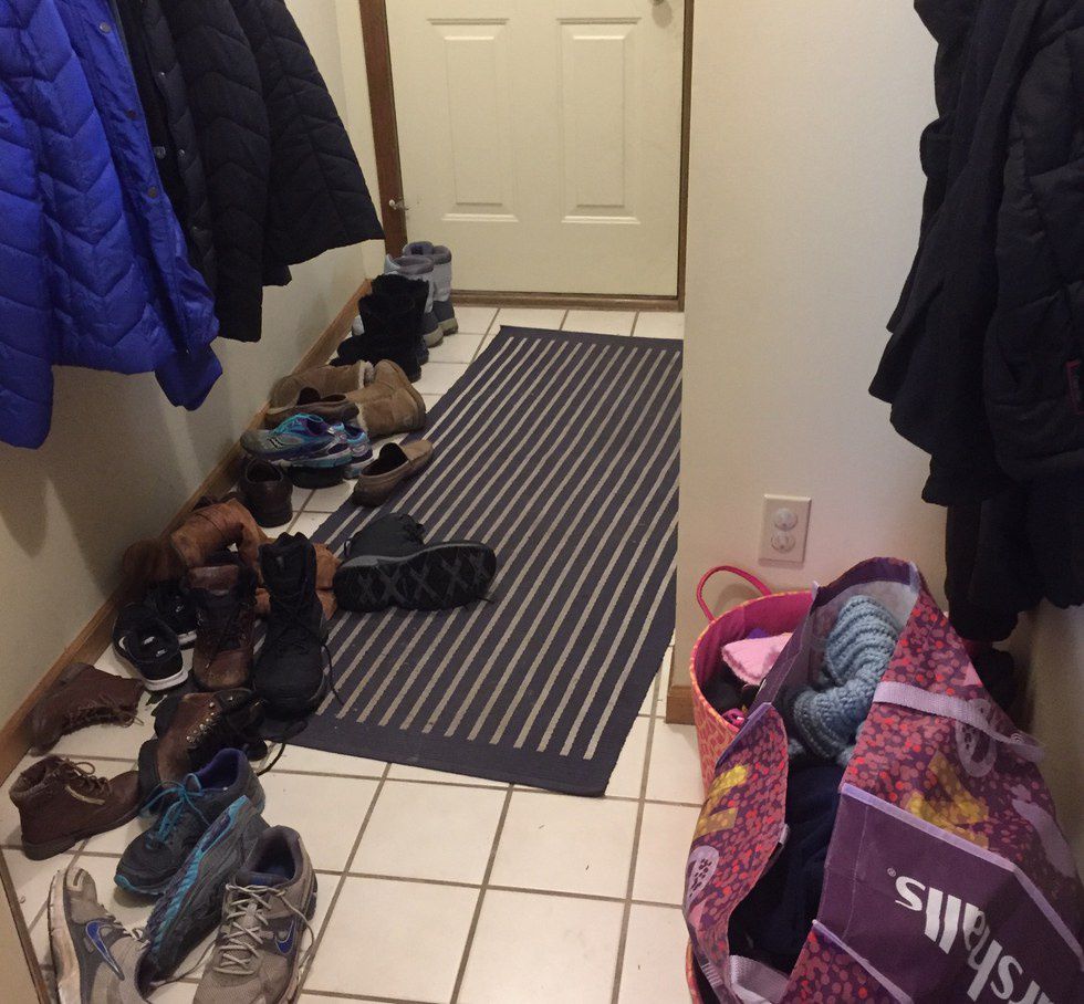 Staying inside is so tempting but life goes on here in Michigan. Having proper outdoor gear is a must. Coats, boots, mittens, hats, and extra large Marshall's bags to hold it all are essential. You also need a space in your home with coat racks, rugs, and bins to store all of this that you don't mind being a disaster zone. If your entry way doesn't look like this most days in the winter then we can't be friends.