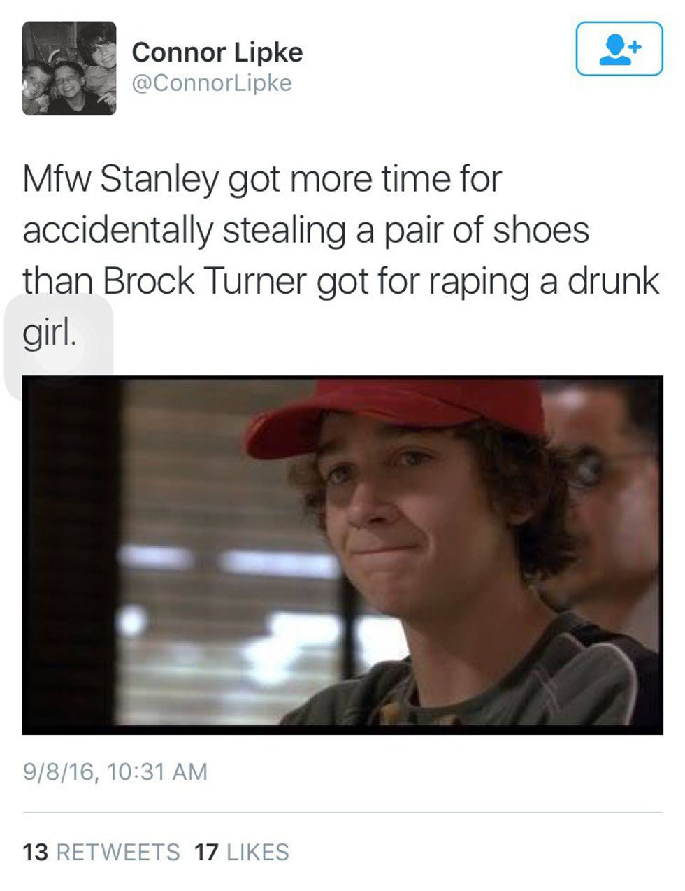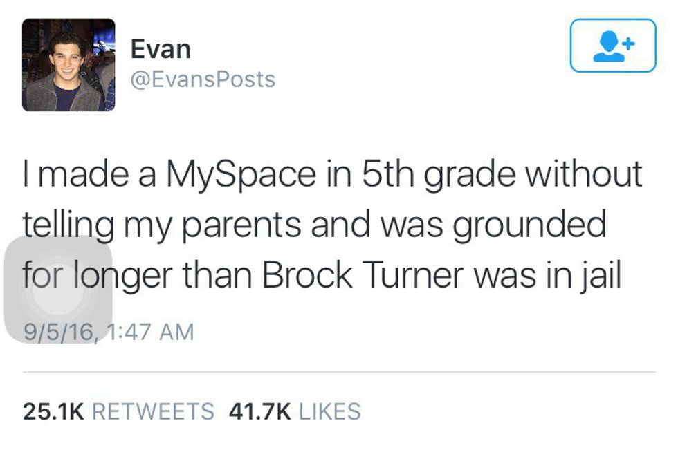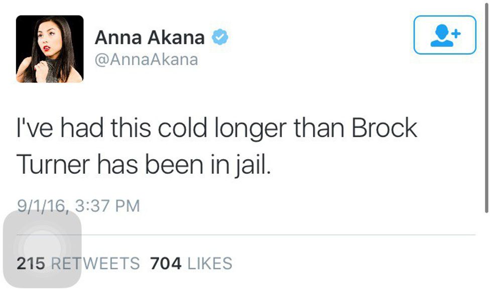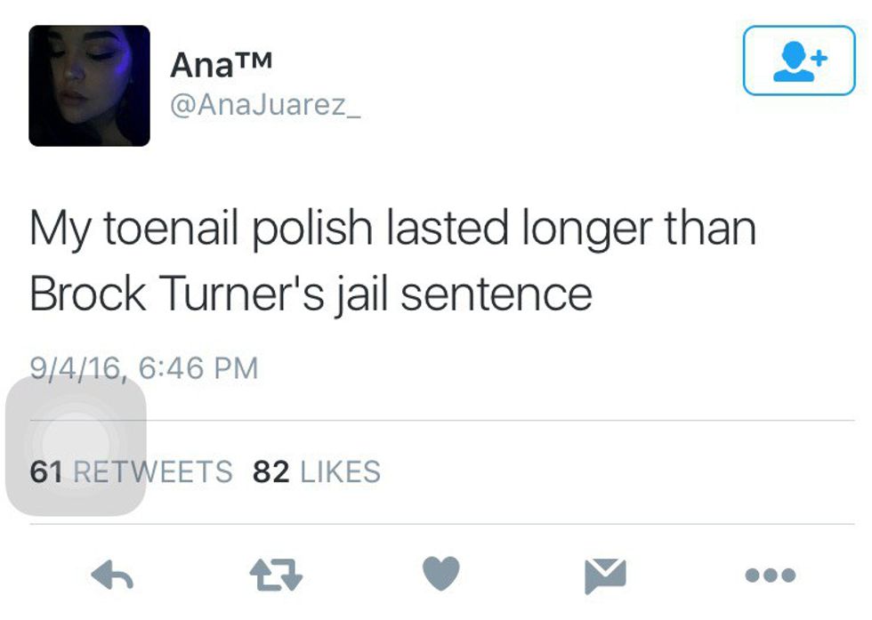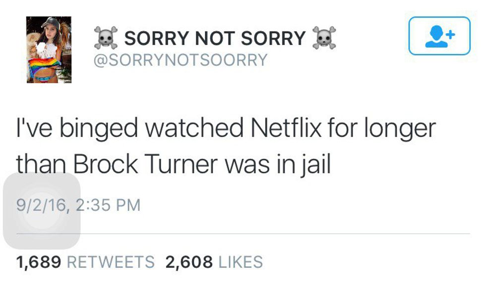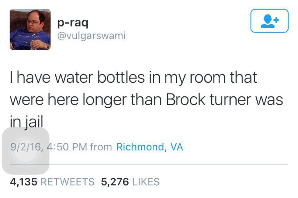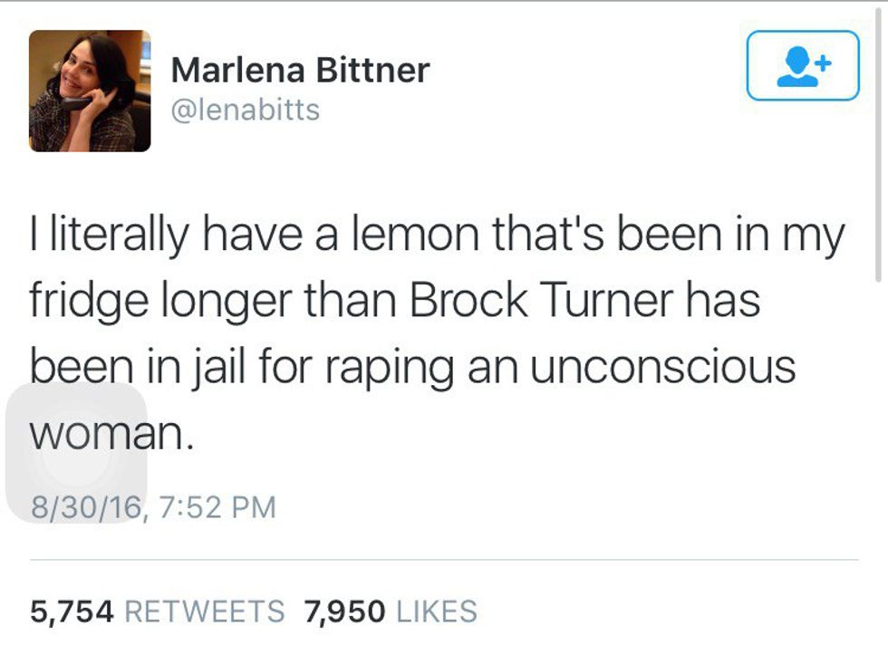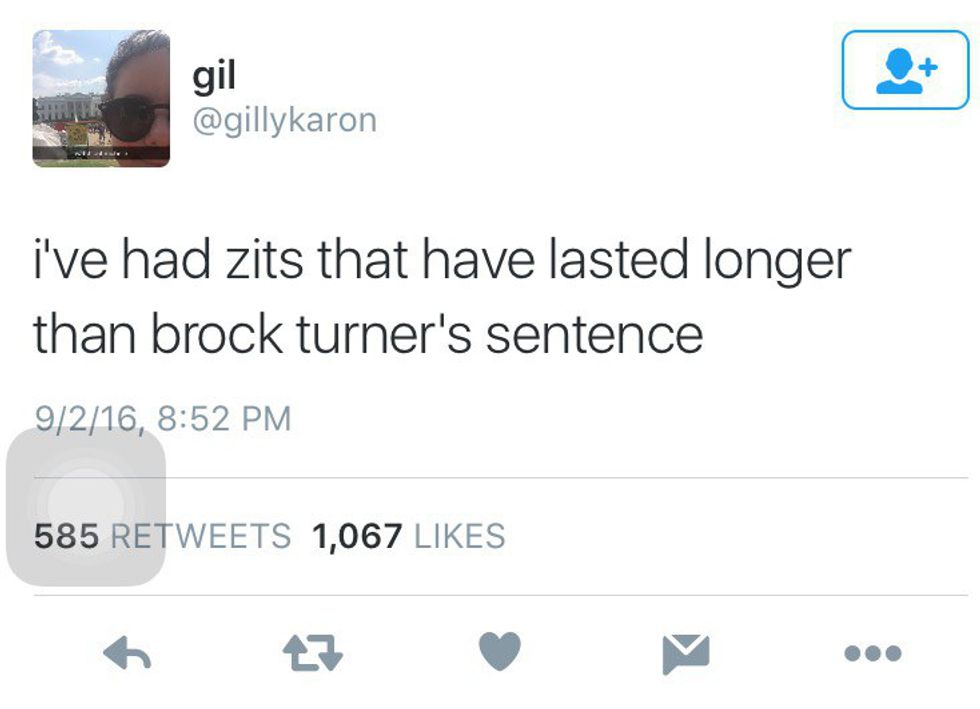 A person can literally suffer from a common cold longer than the time Brock Turner suffered in jail.