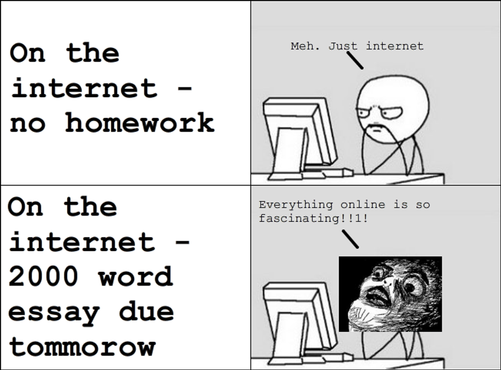 Check Facebook. Then Instagram. Then Twitter. Oh, and don’t forget about Pinterest, Tumblr, and Buzzfeed. Once you’ve checked them all, repeat the process. Chat with friends. Whatever gets your mind off of the paper you’re supposed to be writing.