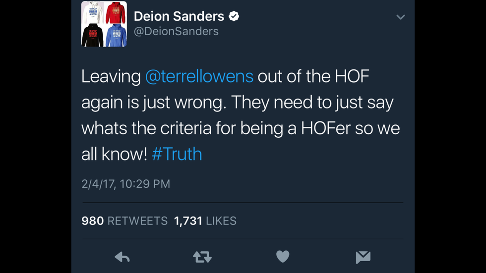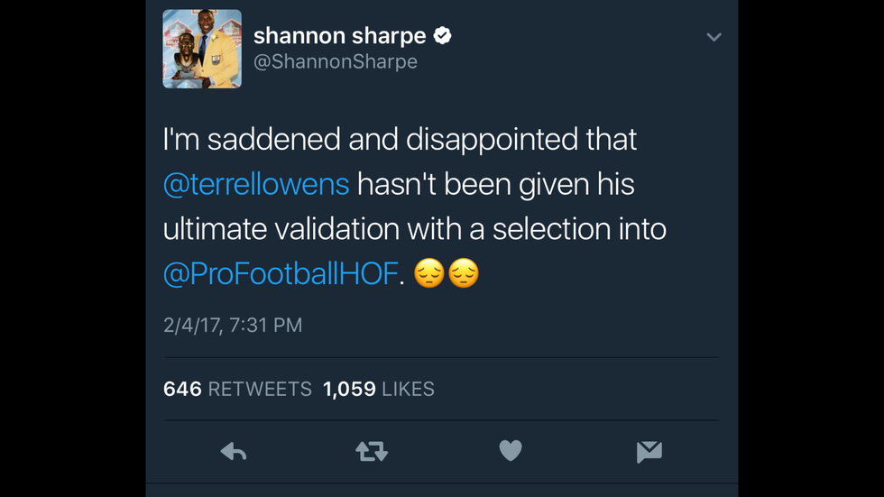 “HOF is a total joke," Owens said. "Honestly, doesn’t mean anything to me to get in at this point."