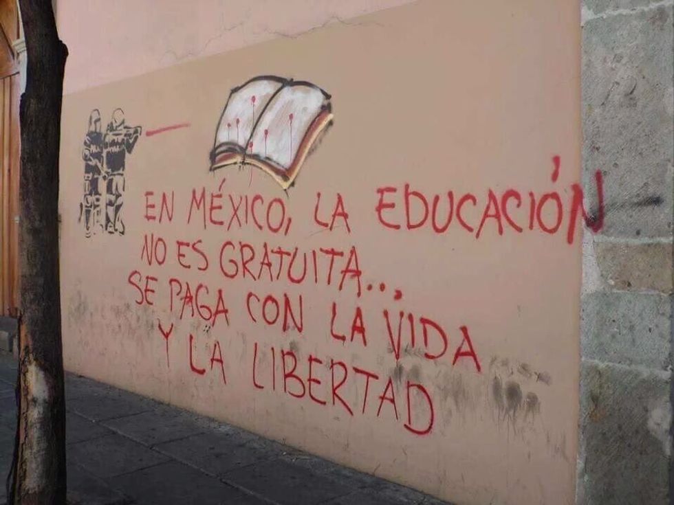 Translation: "In Mexico, the education is not free... You pay with your life and your liberty."