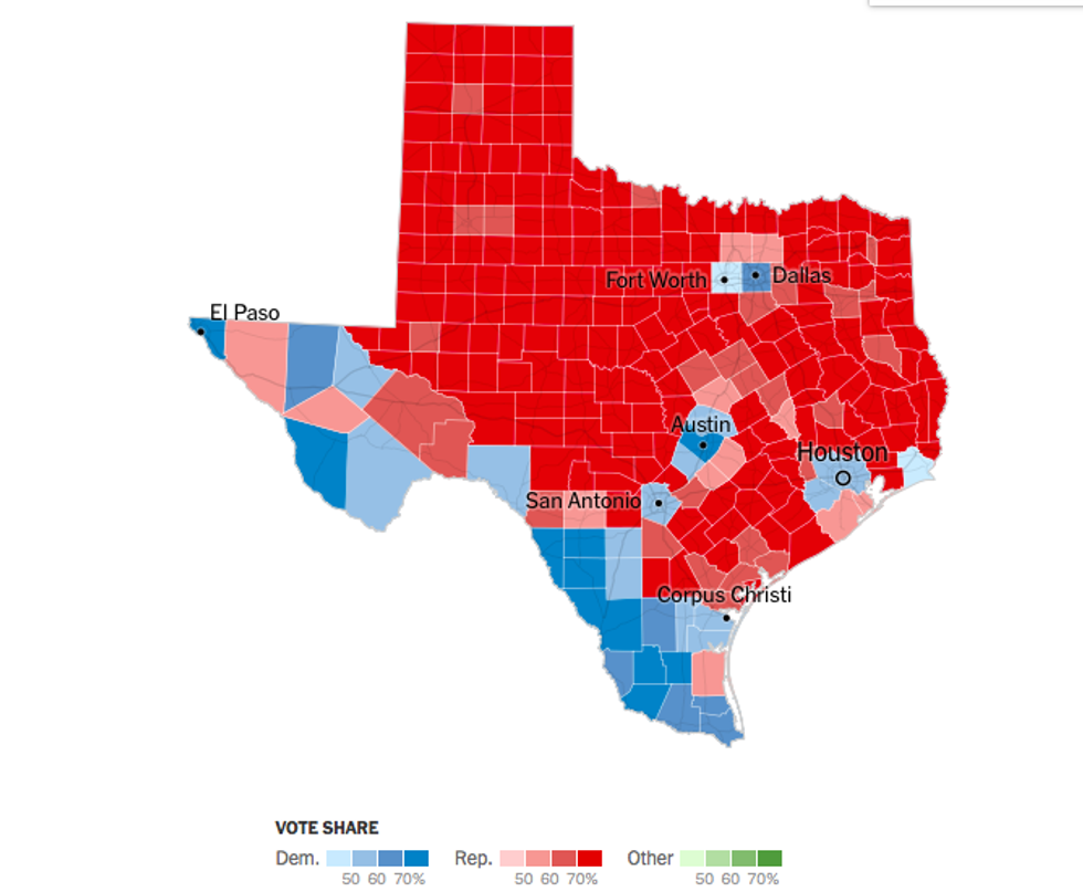 Texas is a historically red state with the Republican party wielding its power holding seats in Congress, presidencies, and in statewide and local elections. Although Beto tried to wield that power into the hands of the Democratic party, it proved that the red curtain could not be lifted. However, the win was not won by a landslide, in fact, it was won by just a slight margin of votes: 200,000. In percentages, that means Ted Cruz took 50.9% of the votes whereas Beto O'Rourke took 48.3% of the votes.