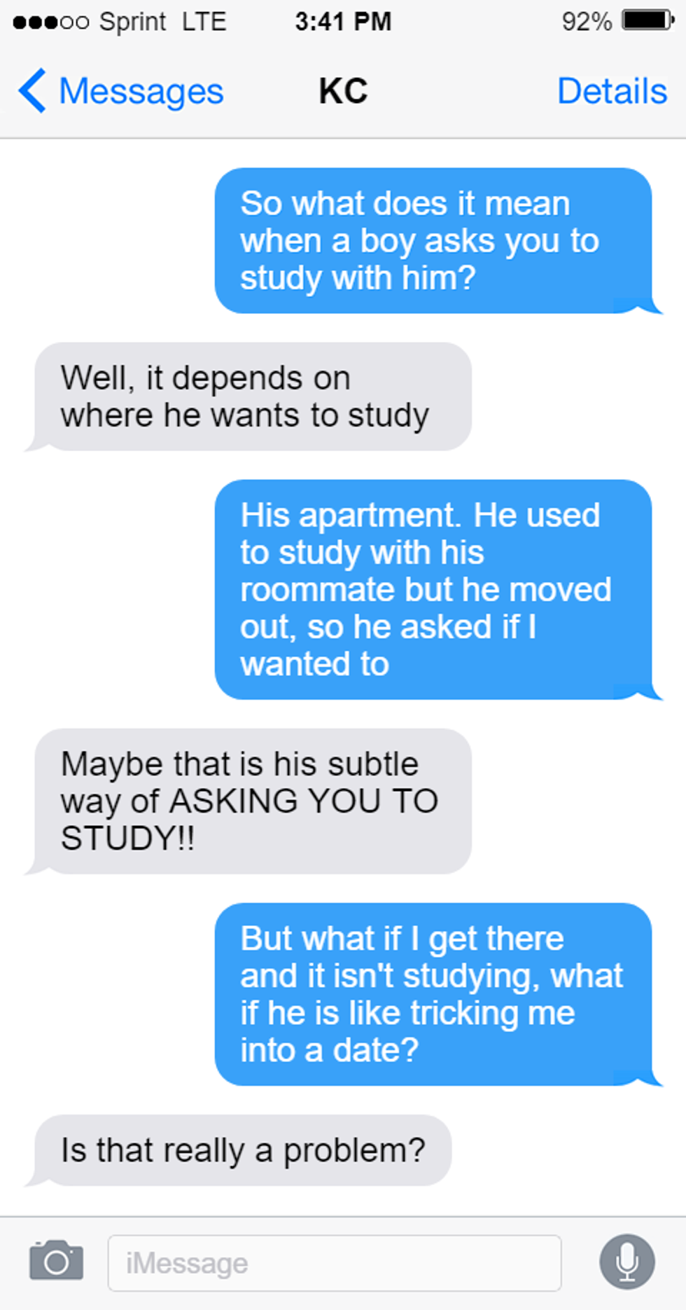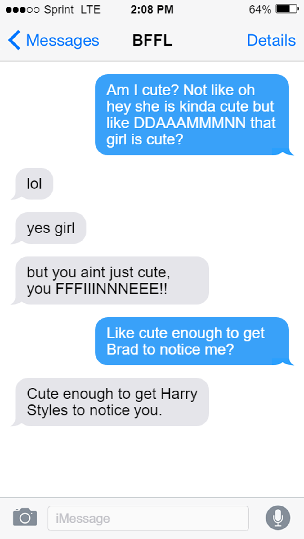 You know that you have a different taste in guys than your friends but you don't want to be with somebody ugly, so you probably go to the group chat to make sure that he is a cutie.
