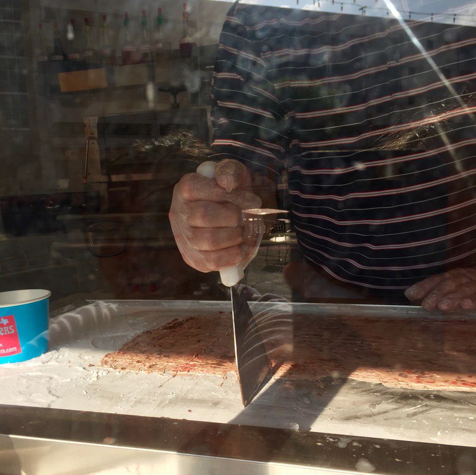 Thai-style ice cream has been taking over the nation by storm. Luckily for us UT students, we have pretty easy access to this delicious treat. If you've walked past the food trucks behind the Co-Op lately, you've probably noticed the new Ice Scrapers truck racking up a pretty good customer line. The truck is owned by a husband and wife team, Les and Jenny, with help from Jenny’s brother, Jess. The owners are extremely friendly, and the glass windows allow you to watch every step of the creation. The food truck is open Mon-Sat 11am - 9pm, and is closed on Sundays.