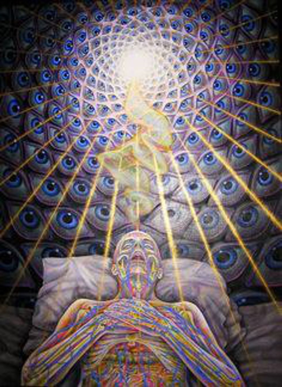Rick Strassman, in his piece Spirit Molecule, describes how at the moment of death, the pineal gland likely releases a large amount of DMT. Some say (based on anecdotal evidence) that because of hallucinogens’ effects of time dilation, suggestibility, and euphoric visions, the viewer may see exactly what they expected to see upon their death. In essence, if you believe in heaven, you’ll see heaven; If you’re worried you’ll be punished, you’ll see hell. Of course, the evidence supporting the “dump of DMT” at the time of death is controversial. It’s currently impossible to prove or disprove this claim, and no further study has been made as to its legitimacy. However, regardless of the cause, it is an undisputed fact that near death experiences (NDEs) often result in hallucination.