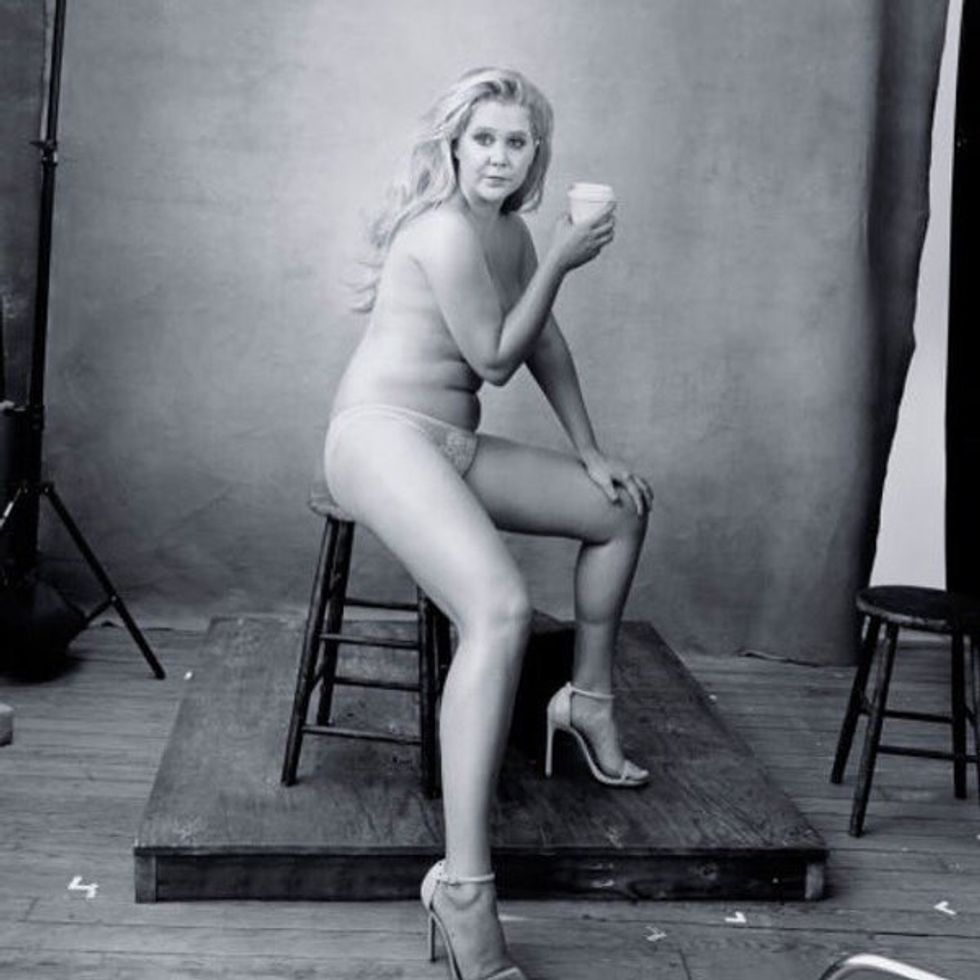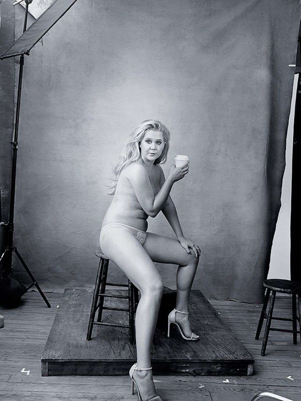 So, this is where my thank you to Amy really comes in. Amy Schumer has decided to model practically nude in the 2016 Pirelli Calendar. In years past, this Italian brand tire company photographed typically twig-skinny models in tropical and exotic locations. The company decided to move away from that standard this year, and has announced that they will photograph 13 women of "outstanding professional, social, cultural, sporting, and artistic accomplishment." This is huge.