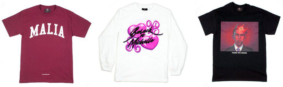 Thanks to the talented Joe Freshgoods, there is a clothing collection that tributes the Obama family. This collection consists of t-shirts, a hoodie, a jersey and a poster. Check out pictures from the collection below: