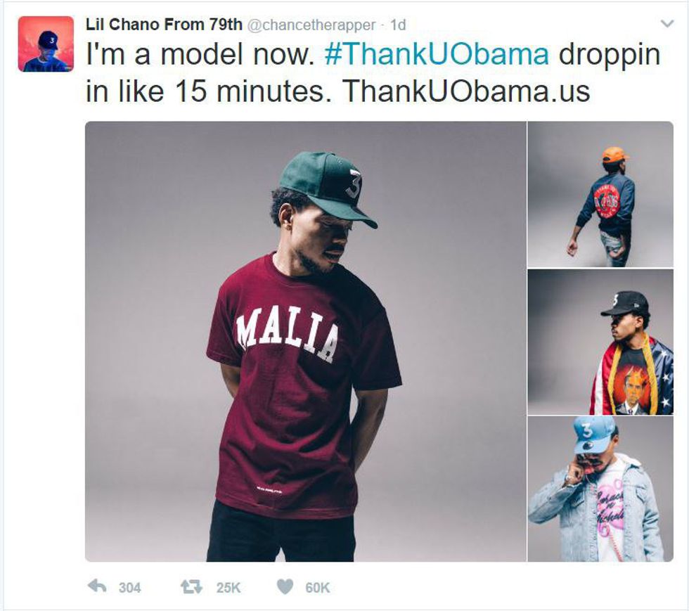 Chance The Rapper made this clothing collection aware to many of us by being granted the opportunity to model after originally asking about the jersey on Twitter. He tweeted pictures of him modeling the collection along with a link of where followers can purchase.