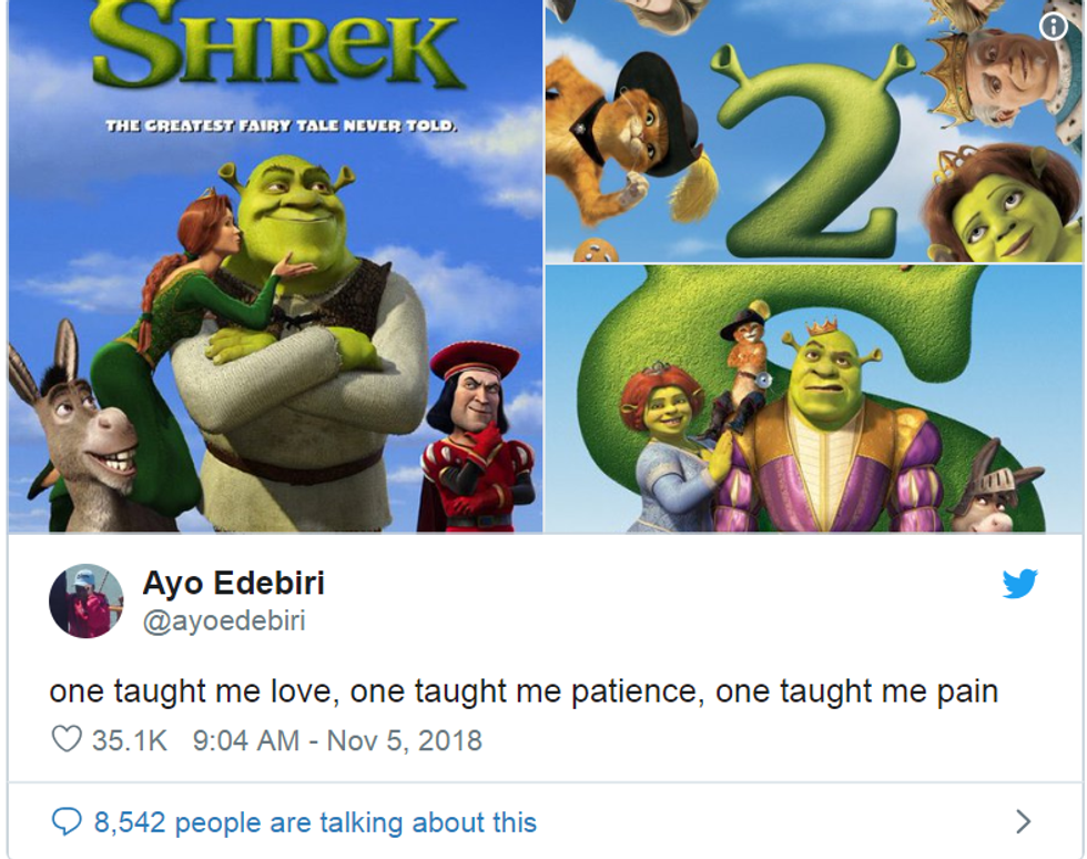 So fans are taking it upon themselves to share what taught them love, patience and pain. And let me tell you, they range from movie sequels to food products. Here are just the funniest and best ones I found from Twitter!
