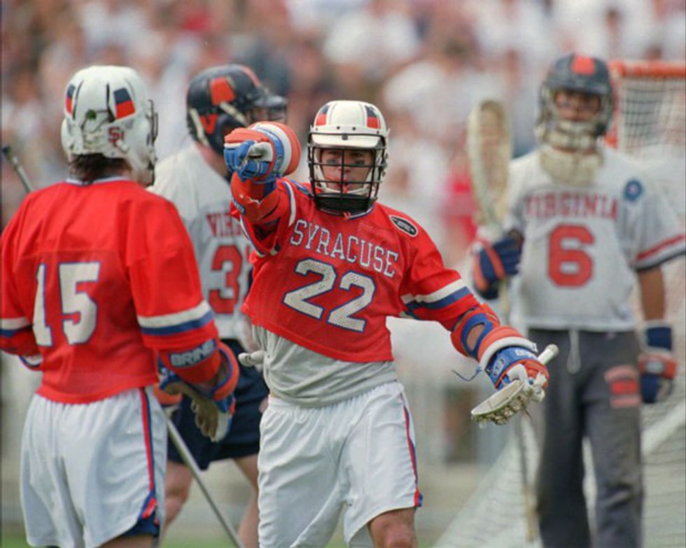 Here are Casey's college accolades: as a freshman at Syracuse, he was a Second Team All-American, and in his sophomore, junior, and senior seasons, he was chosen as a First Team All-American. Casey accomplished two feats that have never been done in college lacrosse. He earned First Team All-American at more than one position--- he was selected as an Attackman in 1998, and in 1996 and 1997 as a Midfielder. Also, Powell became the first and only player to win the National Player of the Year award at two different positions. Not to mention he won the National Player of the Year two years in a row in 1997 and 1998. Powell also helped lead Syracuse to a National Championship in his freshman year. In his time at Syracuse, Casey wore the famous number 22 jersey, which is given to the best player on the Syracuse team ever year, and seemed to live up to the hype.