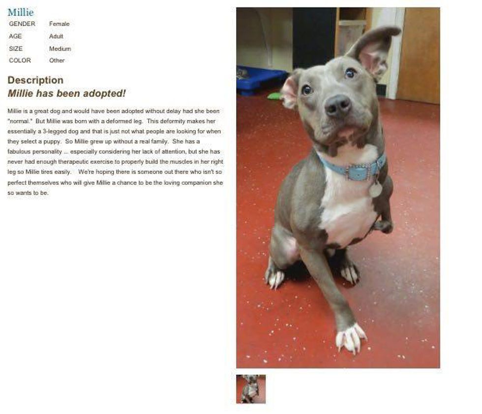 The shelter was elated when I told them I wanted to adopt you. You already had a strike against you -- you were a pit bull. People judged you unfairly, thinking that you must be aggressive and dangerous. If that wasn't enough, you were born with a deformed leg. No one wanted the handicap pit bull, the "broken" dog. But I knew that you were special. You weren't mean, aggressive, or broken. You had a sweet soul, and I loved you from the moment I saw you.