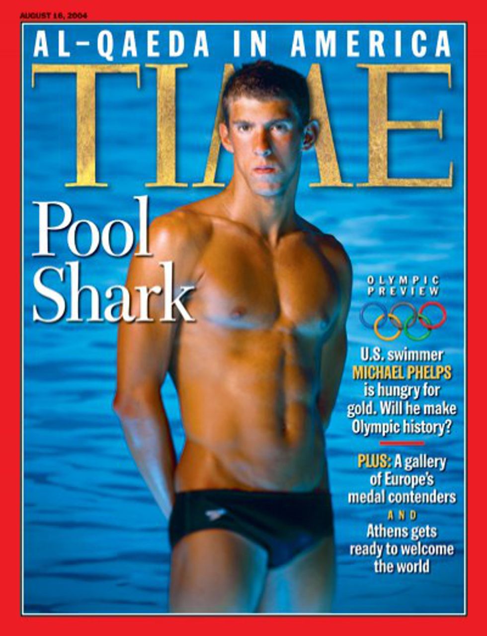 Let's fast forward to 2006 when I was in 6th grade. By that time swimming was my favorite sport and I have developed a full-blown obsession and started to get divisional and state cuts in my age group. I was so inspired and motivated by your success in Athens, that I had posters and quotes of you hanging in my room and a special photo of you hanging in my school locker. Now as a 12-year-old girl the last thing I cared about was the way you looked in your Speedo brief; however my social-studies teacher had a problem with it and thought your TIME Magazine Cover photo was too inappropriate to be hung in my locker at school. So people made fun of me back then for being so obsessed with you and my sport but I'm sure they're not laughing anymore. Thanks for being hot but also thanks for proving to the world that swimming is cool...like really cool.