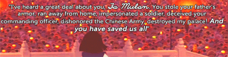Being a woman in a man's world is a hard thing to do, but Mulan showed us that with hard work and dedication we can all be the people we were meant to be.