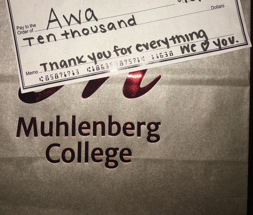 For those of you who don't know what I'm eluding to, let me start at the beginning. My mom, Awa, has been working with Muhlenberg College in varying dining areas for the past 10 years. Ever since she's started, she's told me about these students that love when she remembers their name so she started writing some names down to remember them better and remember more. As she moved to different dining areas, more students started recognizing her and saying special hellos. To this day I see the sparkle in her eye and comfort in her smile when she talks about her Muhlenberg family. She's given words of encouragement and tough love at the right times and even though I don't see it much, I can feel the gratitude transfer through her when she comes home. She's said, “It’s my job” and “I love them too.” Never in her wildest imaginations did she think the students had to do any more than smile when coming through to show their appreciation.