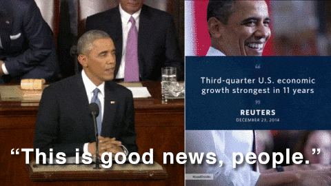 The unemployment rate is down, jobs and wages are increasing, economic growth is on the rise. You lifted us out of a recession, which could have hurt us more than it already had, so Thanks, Obama.