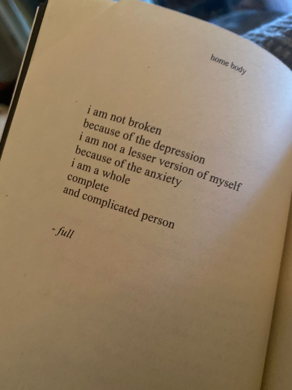 I opened it, and I had to sit on the floor because her words were starting to thaw away my numbness. Rupi speaking her truth, made me realize that I am not fucking insane for feeling the things that I do, and that there are so many people out there that are hiding these emotions too. Yes, I started to read poetry and even write it, but it was because of this book, because of Milk & Honey.