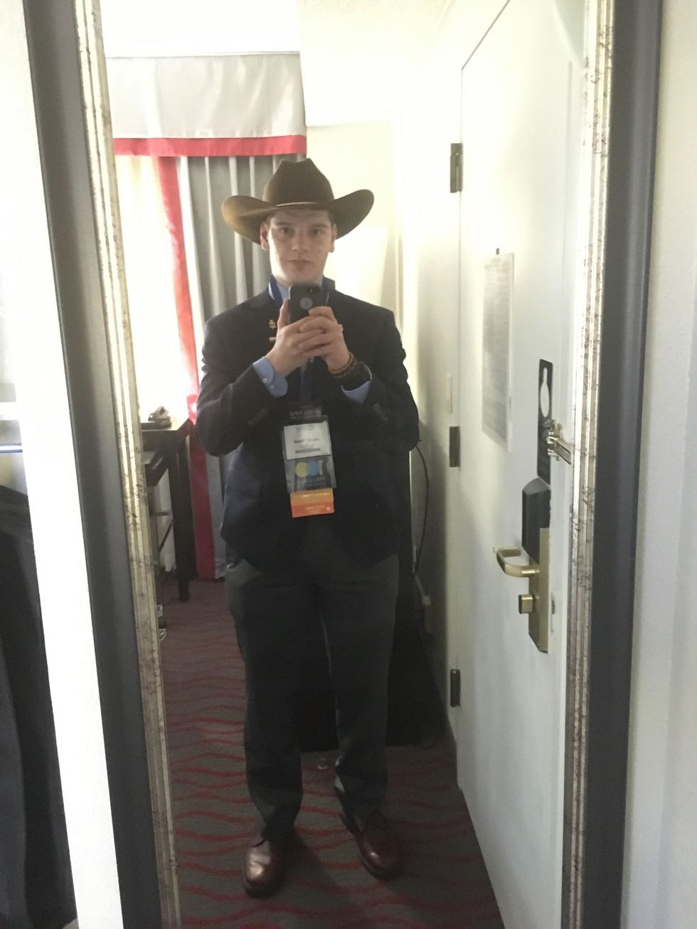 I would have kept walking past Jacob, standing in a line of people, had I not noticed his cowboy hat.