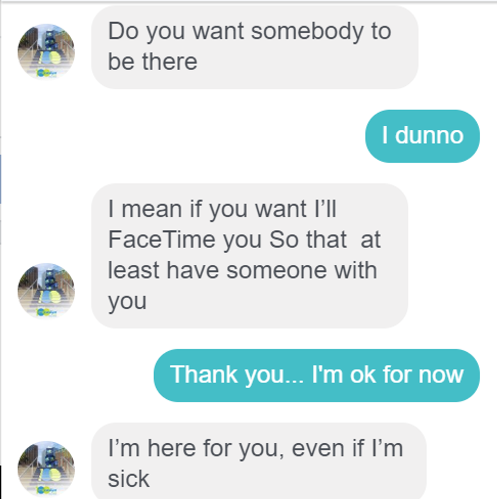 Jacob offered to FaceTime me so that I wouldn’t be alone, even though he was sick.