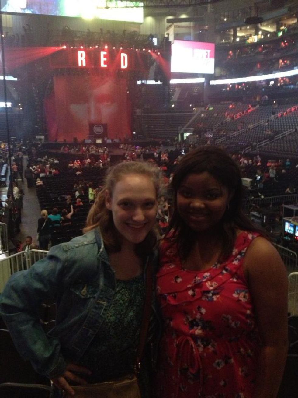 I suddenly found myself surrounded by my friends and family who were willing to do anything for us. As I'm sure you know because of your mom's diagnoses, this can be a little overwhelming. On the days my mom had chemo, I drove myself to school in her car and blasted Red. My parents surprised me with tickets to see your show in Atlanta. I'm almost positive that my mom had chemo the day before the show. On the bright side, I got to go with one of my best friends. (seen in the picture below). And we had fun despite some interesting things that happened. Both you and Ed Sheeran basically created one of the best nights of my life.
