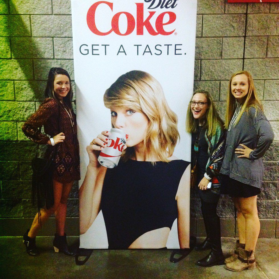 Now, I'm in college. I know every word to every song on 1989, and may even possess a blanket with the album cover on it. For my 20th birthday, and my cousins' Valentine's day present, we got to rock out to you again. This time, with awesome colored bracelets. I can't tell you how many times I have made "Out of the woods" relate to everything from relationships to final exams. "Shake it off" is basically my anthem and the title to my first Odyssey article. (cousins are pictured below).