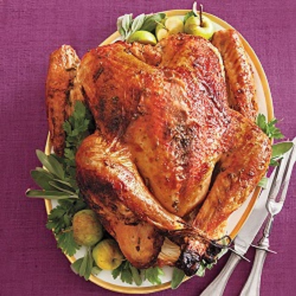Tip: Your turkey will cook more evenly if it is at room temperature before you put it in the oven. More turkey tips here.