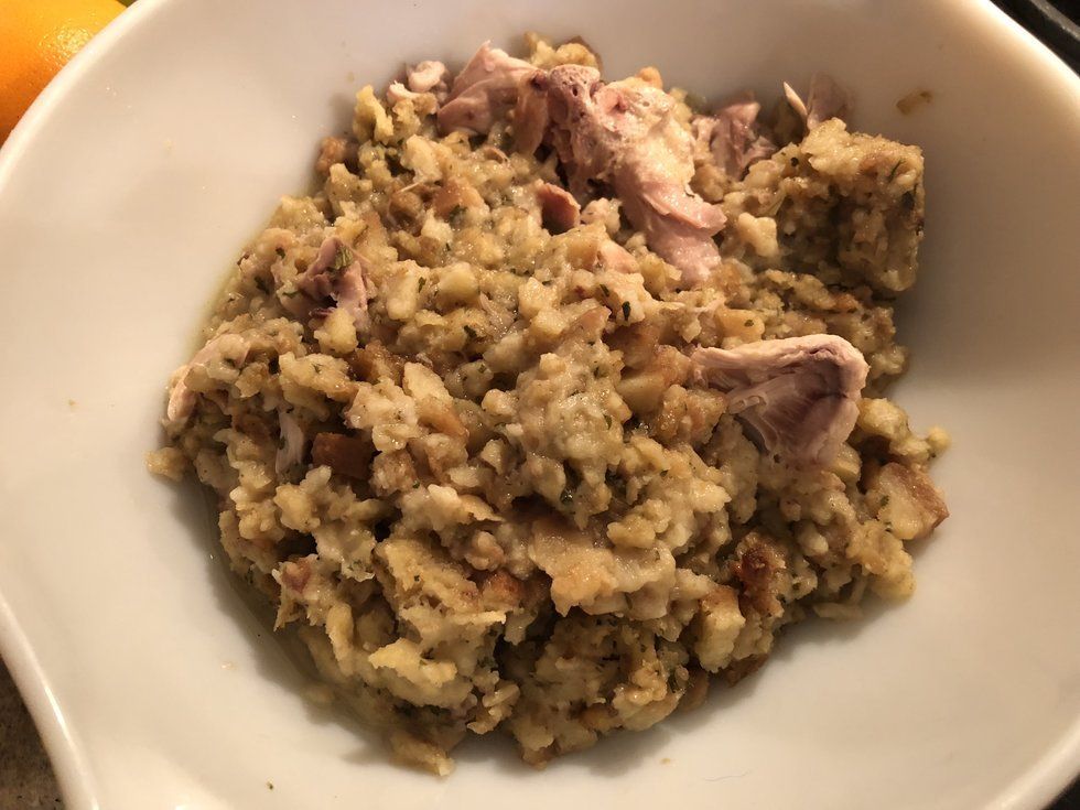 Finally, we have my favorite. We call it dressing, but many people call it stuffing. I've learned the major difference is that dressing is cooked on its own in a separate pan, and stuffing is actually stuffed into the turkey and cooked with it. Regardless, it is my absolute favorite Thanksgiving dish, and my stomach is growling just talking about it.