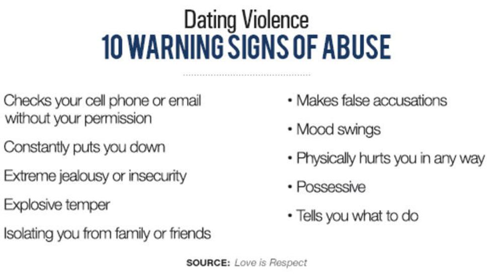 Because abuse comes in so many forms, it may be unclear what is and isn't abuse. Love Is Respect, an organization that aims to end dating violence, provided a list of warning signs. For more information on the warning signs and how these relationships work you can visit their site, which I've already linked in the above paragraph.