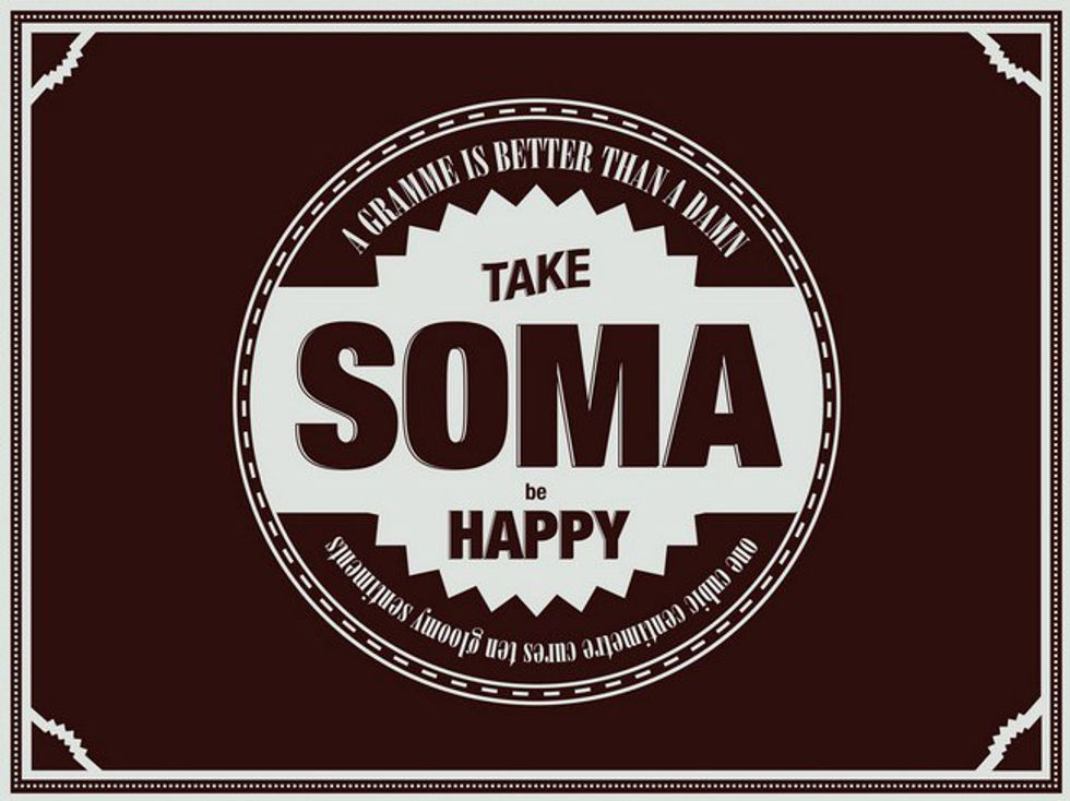 Have you ever read "Brave New World" by Aldous Huxley? If you haven't, know that instead of using torture to turn rebels into obedient citizens (like the "1984" government does), they use pleasure. The government makes the public dependent on pills, specifically one called soma, which produces a stupor and dream-like trance and makes people forget about all their problems. "A gramme is better than a damn," they say. Very similar, in fact, to how dependent our American society is on pharmaceuticals. We believe pills solve everything, forgetting to try and find the root of the problem first.