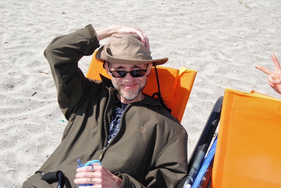 But I don't see that. I see my dad before he got terribly sick. I see his honest smile. I see his gray beard and tired face. I see the cane that he used to support his deteriorating body, resting on his chest. I see the light colored sand, reminding me that this is at the beautiful Folly Beach in South Carolina. I see our friend, Lisa, flashing a peace sign into the frame of the shot. He went through such pain, sickness, and discomfort in his final years that he did not in the least bit deserve but this photo doesn't show those feelings. It only displays his happiness and appreciation for life.